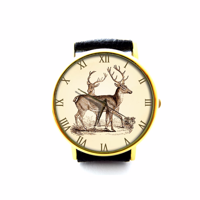 Vintage Deer Stag Leather Watch, Unisex Watch, Ladies Watch, Mens Watch, Deer Jewelry